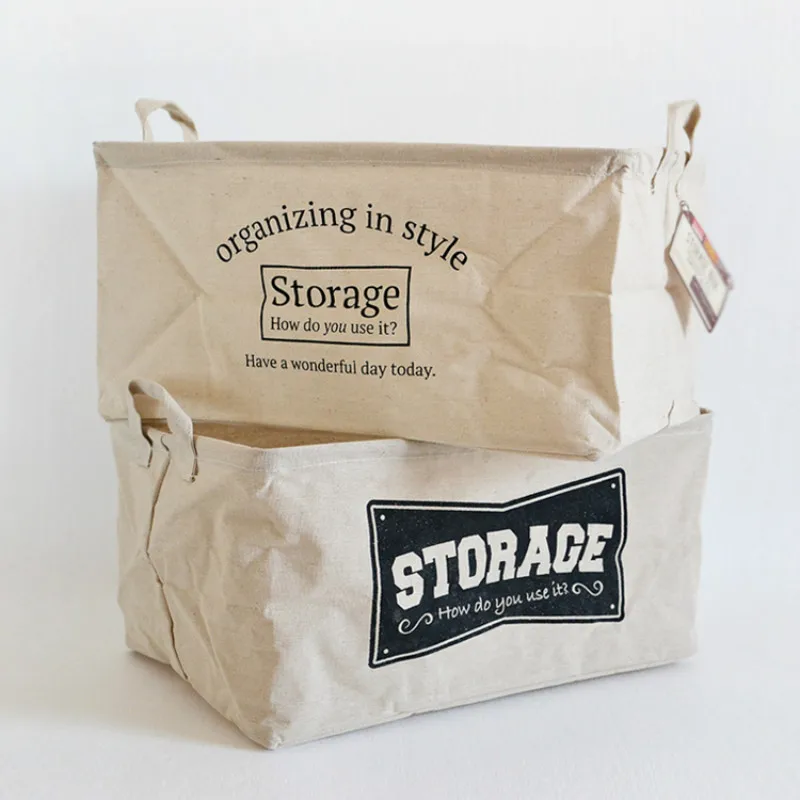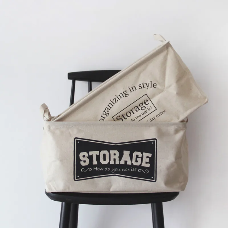 DUNXDECO Home Office Storage Laundry Basket Toy Cloth Organizing Simple Vintage Black Words Print C